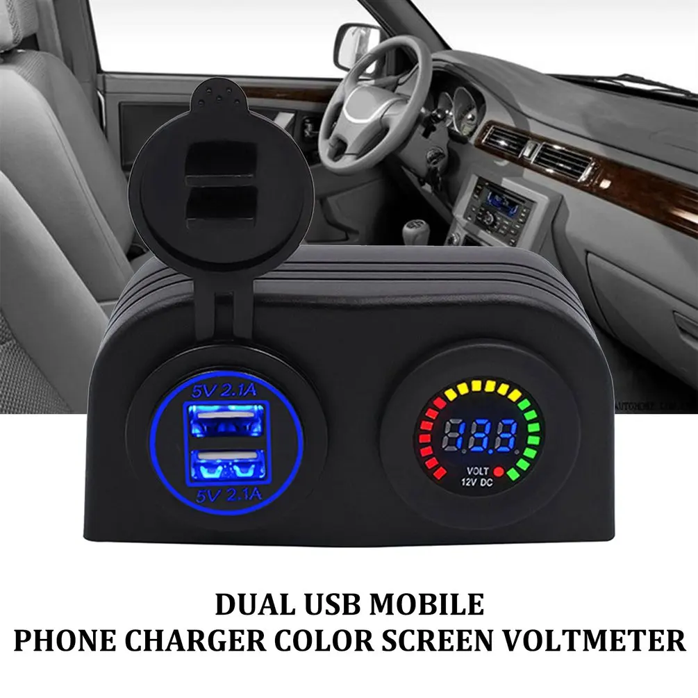 TOP Car Rv Yacht Boat 4.2A Dual Usb Mobile Phone Charger Color Screen Voltmeter Universal Refit Accesso